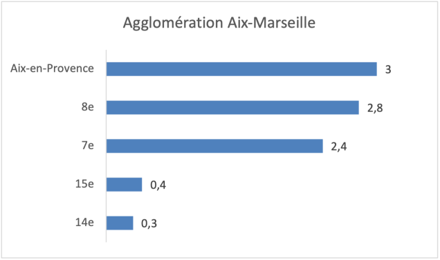 Le tableau n’est pas très différent à Marseille où les contrastes sociaux sont toutefois nettement plus prononcés d’un arrondissement et d’un quartier à l’autre. Les arrondissements les plus riches (notamment le 7e et 8e arrondissements) sont ceux qui ont le taux de participation – nombre de contribution s rapportées à la population – le plus élevé : 2,8% pour le 8e et 2,4% dans le 7e ; dans la ville d’Aix-en-Provence, zone la plus riche de l’agglomération, le taux de participation atteint même 3%. Inversement, dans les arrondissements les plus pauvres (15e, 14e…) le taux de participation tombe à 0,4% voire 0,3%.