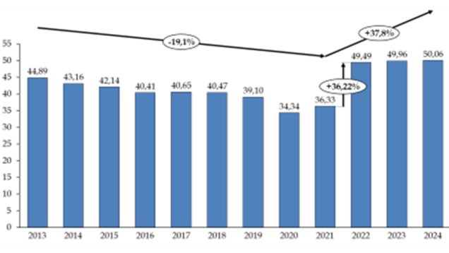 A l’évidence, ceci n’est pas l’indicateur d’une détresse financière des ménages, mais d’une détresse morale. Car on ne met pas d’argent de côté (en moyenne) quand on ne peut plus joindre les deux bouts (en moyenne). Cela ne vient pas d’un constat que le pouvoir d’achat aurait baissé en moyenne ; ce n’est pas le cas – le pouvoir d’achat du revenu disponible des ménages, après transferts, a augmenté de 13,3% sur la période 2017/2024, plus que la croissance cumulée du PIB, 10,4%[47]. Cela vient plutôt d’une attente que demain, à cause de la conjoncture, à cause des déficits dont on parle de plus en plus, à cause du budget qu’on ne parvient pas à boucler, il baissera.