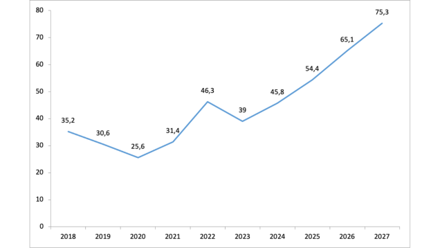Lecture : estimations pour les années 2025, 2026 et 2027