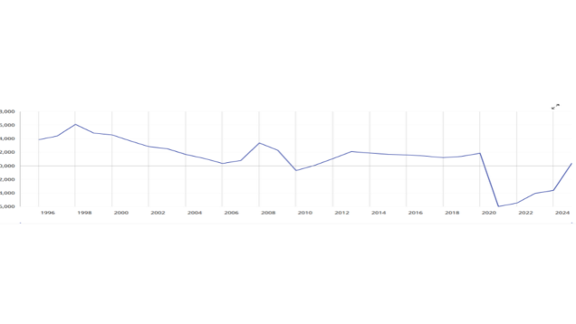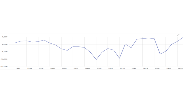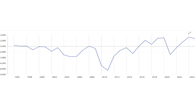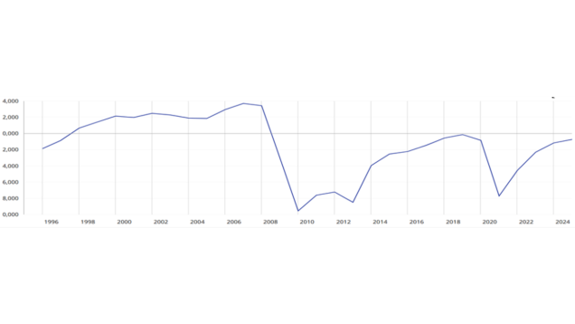 La dynamique de la dette est entretenue par un déficit public persistant depuis 50 ans, mais qui s’est aggravé ces dernières années. Elle devrait atteindre 115.6% du PIB au deuxième trimestre 2025, au lieu de 20% au début des années 1980.