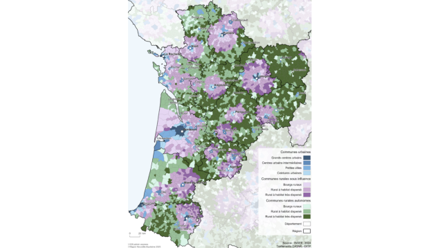 [46] Pôle Datar de la région Nouvelle-Aquitaine (traitement). Sources Insee, 2024. Communes urbaines, rurales sous influence et rurales autonomes [document cartographique] IGN admin express. https://cartes.nouvelle- aquitaine.pro/portal/apps/sites/#/ressourcesditpdatar/apps/eaad21f917d14b65a9b759aa681cd75b/explore