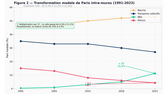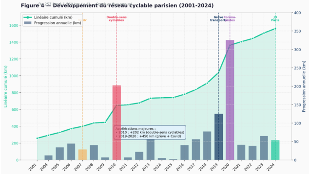 [29] APUR, « Évolution du vélo à Paris : 4 300 km d’aménagements cyclables existants », 2025.