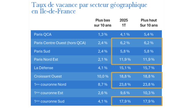 En juillet 2025, en Île-de-France, 6 millions de mètres carrés de bureaux sont vacants. Un quart de ces surfaces le sont depuis plus de quatre ans, notamment en deuxième couronne (40 % de la vacance y est structurelle) et dans l’ouest (péri Défense, boucle sud). Une large partie de ce stock est obsolète, et nécessiterait une rénovation et mise aux normes qui n’est pas viable dans ces marchés où la demande locative est atone et l’offre trop abondante.
