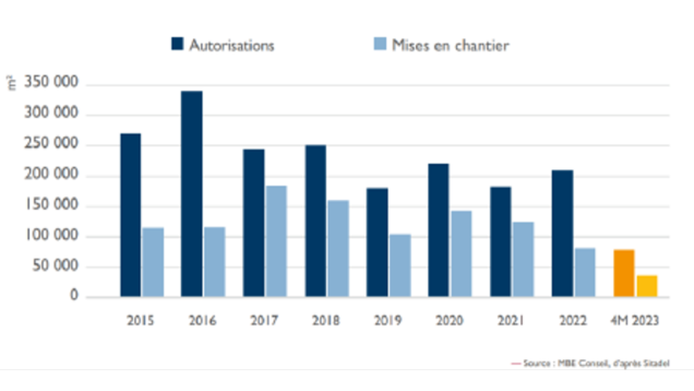 - sur ce total, seule la moitié des autorisations obtenues a donné lieu à des mises en chantier effectives. Le solde des autorisations est resté sans suite.